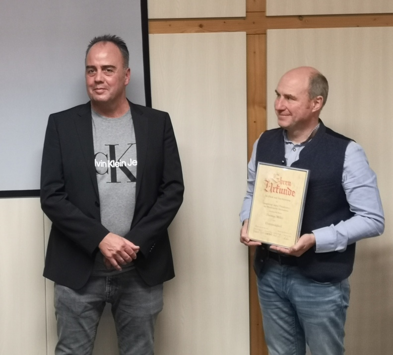 Zum Abschluss gab es noch eine ganz besondere Auszeichnung zu vergeben. Thomas Miller wurde in Anerkennung seiner Verdienste rund um den Verein zum Ehrenmitglied ernannt. Herzliche Gratulation!
